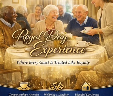 Whether someone lives alone, feels isolated, would enjoy companionship, or benefits from gentle routine and social activity, Royal Day Experience offers a positive environment filled with care, conversation, and meaningful interaction.